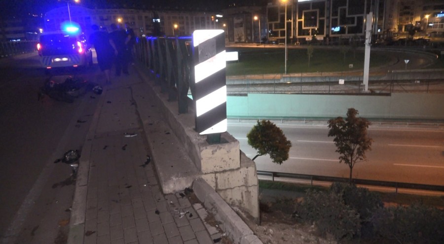 Bursa'da motosikletiyle viraja hızlı giren 18 yaşındaki genç, kontrolünü kaybedince motordan savrularak viyadükten aşağı yuvarlandı. Bariyerlere çarparak durabilen genç ağır yaralandı.
