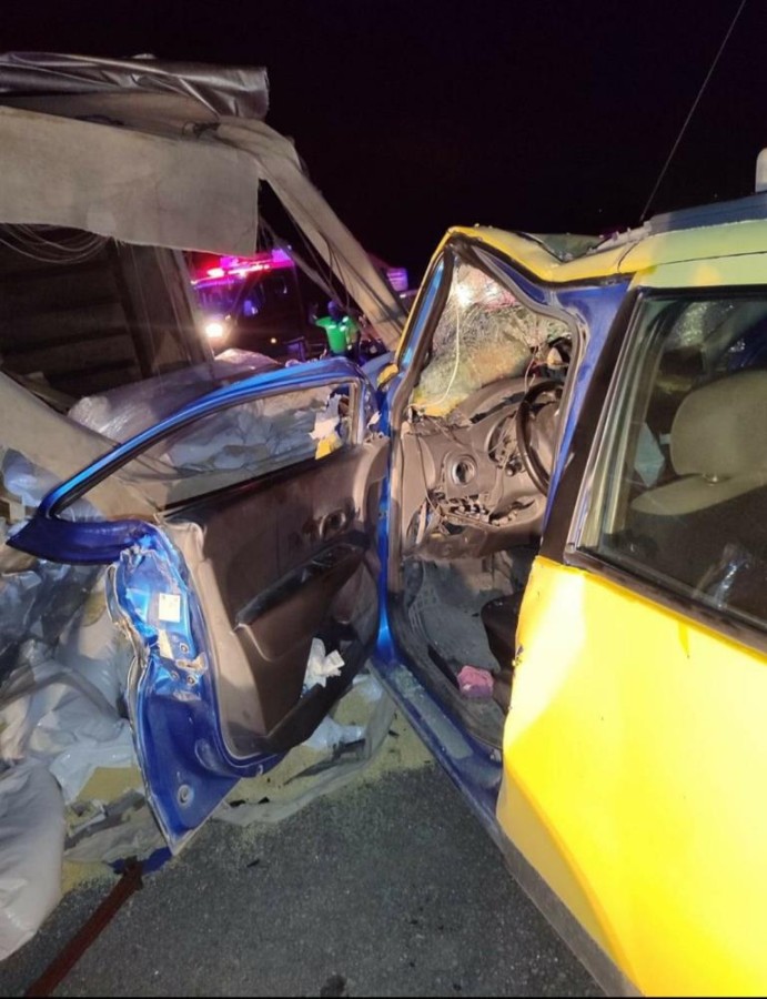 Tır yan yatmasının ardından sürüklenerek karşı şeridi kapatırken, Bursa istikametine seyir halinde olan Beyhan G.'nin kullandığı 16 T 6024 plakalı taksi tırdan yola saçılan yüke çarptı.