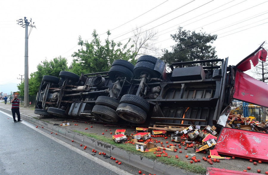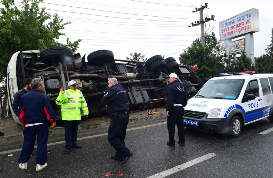 aza, saat 14.00 sıralarında Orhangazi Göl Yolu kavşağında meydana geldi. Edinilen bilgiye göre, C.V. (32) idaresindeki 35 MAB 28 plakalı domates yüklü tır, Bursa istikametinden İstanbul istikametine giderken kavşakta S.S. (39) idaresindeki 16 VS 061 plakalı otomobile çarparak kontrolden çıktı. Kaldırıma çıkıp trafik lambalarını deviren ve yan yatan tır yaklaşık 30 metre sürüklendikten sonra durdu. Tır sürücüsü vatandaşlar tarafından yaralı olarak kabinden çıkarılırken, araçtaki tonlarca domates yola saçıldı. Olay yerine gelen 112 Acil Servis ekipleri, yaralı sürücüyü Orhangazi Devlet Hastanesine kaldırıldı. Kaza sonrası otomobildeki 2 kadın da büyük şok yaşadı.