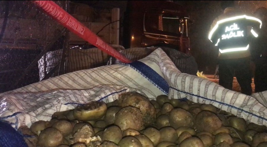 Bursa'da forklift ile tıra patates çuvalı yükleyen işçi, kullandığı forkliftin yan yatması sonucu altında kalarak hayatını kaybetti.