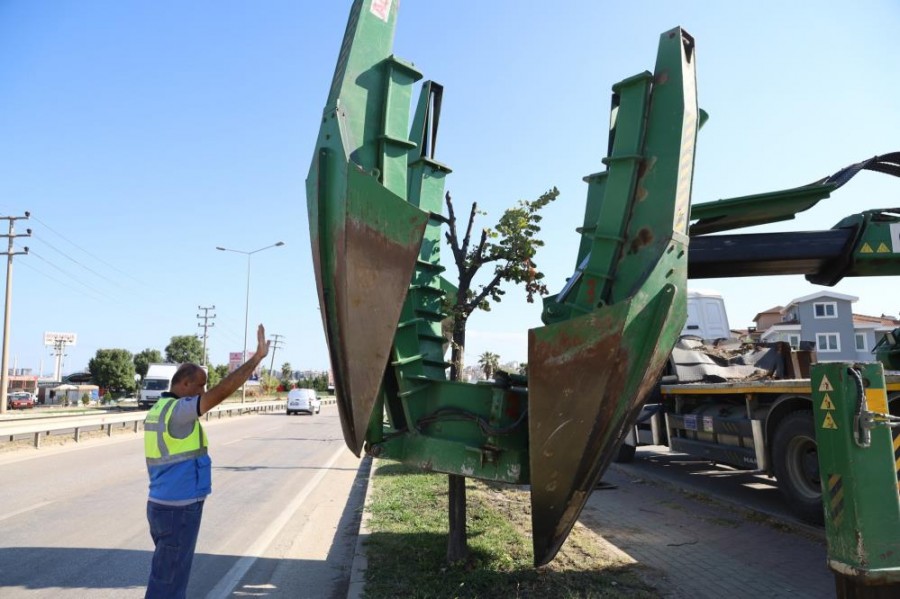 Bursa'nın yeşil kimliğini ön plana çıkarmak amacıyla kente büyük ölçekli park ve yeşil alanlar kazandıran Büyükşehir Belediyesi, genişletilecek yol güzergahında kalan 450 ıhlamur ağacını 'özel araçlarla' Hamitler'deki ağaçlandırma sahasına naklediyor.