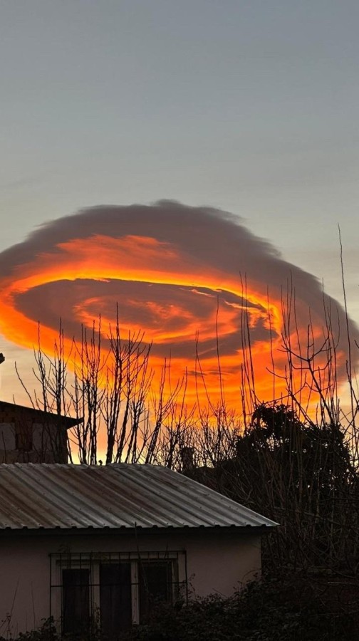 Bursa'da sabahın ilk ışıklarında UFO görünümlü bulutu gören vatandaşlar şaşkınlıklarını gizleyemedi.