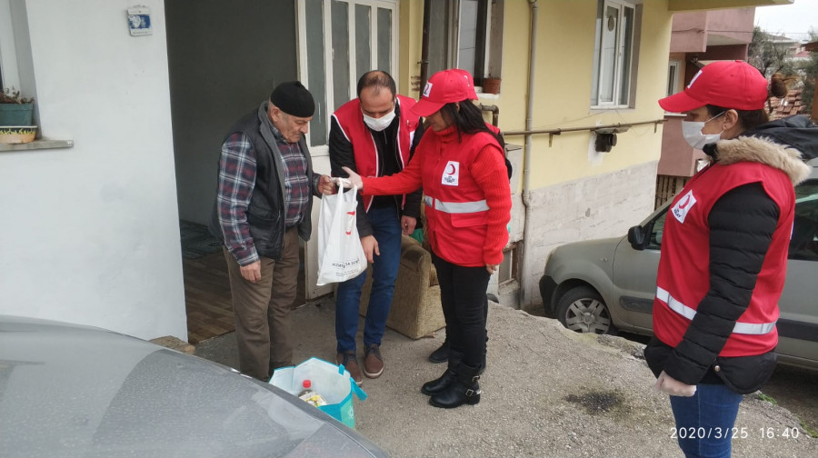 Mudanya merkez ve köylerinde tek başına kalan 65 yaş üstü vatandaşların evlerine giden Kızılay Mudanya Şube Başkanı Mustafa Bayrak ve gönüllüler onlara yardım paketlerini iletti. Kızılay Mudanya Şube Başkanı Mustafa Bayrak, genelge sebebiyle sokağa çıkamayan 65 yaş üstü vatandaşların ihtiyaçlarını belirlediklerini, onların taleplerine göre hareket ettiklerini belirterek, "Yaşlılarımız bizi karşısında görünce duygulanıyor. Türk Milleti'nin dayanışması bu zor günlerde bir kez daha gözler önüne serildi. Avrupa 65 yaş üstü hastalarını ölüme terk ederken, Türk Milleti'nin kadirşinaslığı ve devletimizin gücü sayesinde 65 yaş üstü vatandaşlarımızın yüzünü güldürüyoruz" dedi.