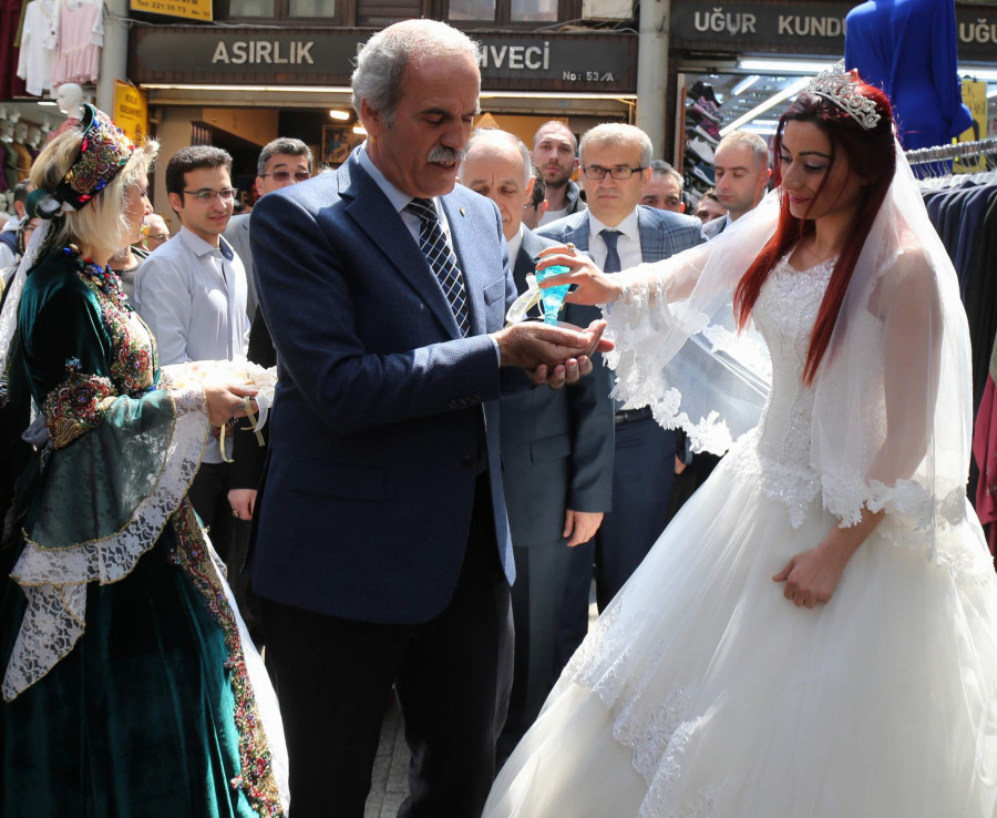 Bursa Büyükşehir Belediye Başkanı Recep Altepe, Okçular Çarşısı'nda Vildallı abiye gelinlik mağazasının açılışına katıldı.