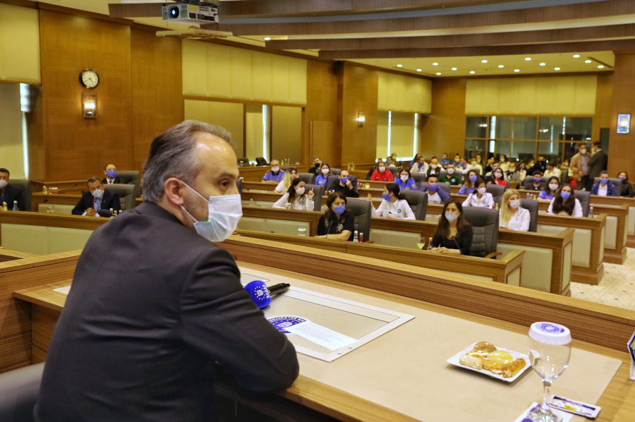 Pandemi sürecinde büyük fedakarlık gösteren ve Bursalıların taleplerine cevap verme noktasında çağrı merkezinde önemli görevler üstlenen personelle bir araya gelen Bursa Büyükşehir Belediye Başkanı Alinur Aktaş, 13-14 Mart tarihinde başlayıp 2,5 ay süren korona virüs sürecinde Türkiye'nin birçok ilklerle tanıştığını dile getirdi. Devletin sağlık alanındaki yatırımlarının ve alınan tedbirlerin ne kadar doğru olduğunu herkesin gördüğünü belirten Başkan Aktaş, Bursa'daki hasta sayısının Türkiye ortalamasının altında olduğunu hatırlatarak, yoğun bakımlarda da hiçbir sıkıntının yaşanmadığını vurguladı. Valilik, Büyükşehir Belediyesi, emniyet, jandarma ve diğer kurumların süreçte büyük gayret gösterdiğini aktaran Başkan Aktaş, "Bursa Büyükşehir Belediyesi olarak makine, ekipman, personel, finansman gücümüz var. Biz birçok kuruma göre daha rahat hareket edebiliyoruz. Bu manada hemen bir yapılanma içine girerek kriz masası oluşturduk. Diğer birimlerden arkadaşları Alo 153 ve Beyaz Masada buluşturarak yapılanma içerisine girdik. Sahada erzak ve sıcak yemek dağıtımları yapıldı. Bu süreci kolaylaştırmak için hep beraber bir gayret ortaya koyduk. Hepinize yürekten teşekkür ediyorum. Bu ülkeye, millete ve şehre hepimizin borcu var. İşimizi o yüzden hakkıyla yapmalıyız" dedi.