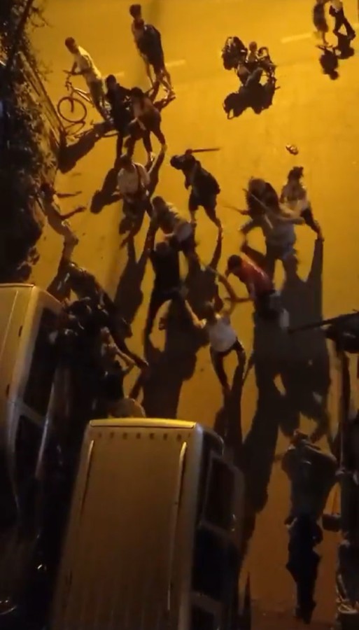 İki grubunda birbirine vurduğu anlar kameraya yansırken, çevredekilerin ihbarıyla, olay yerine polis ekibi sevk edildi.