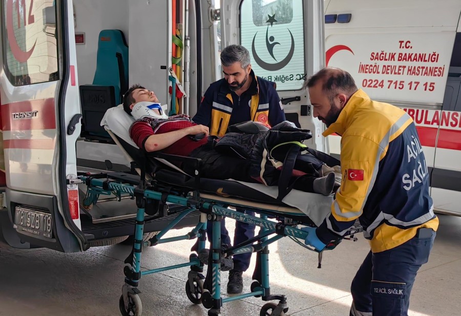 Yaralı sürücü, olay yerine sevk edilen ambulans ile İnegöl Devlet Hastanesi'ne kaldırıldı. Kaza anı bir işyerinin güvenlik kamerasın saniye saniye yansıdı.