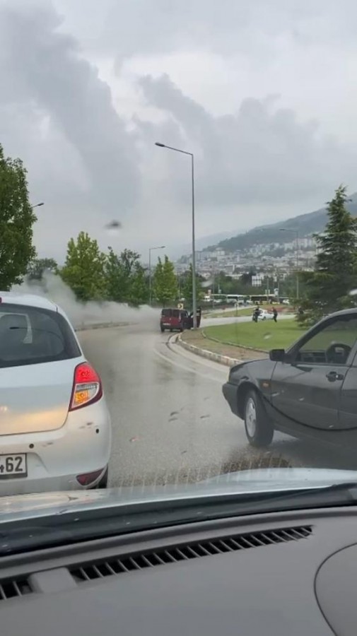 Bursa'da bir otomobil motor kısmında meydana gelen arıza sonucu alevlere teslim oldu.