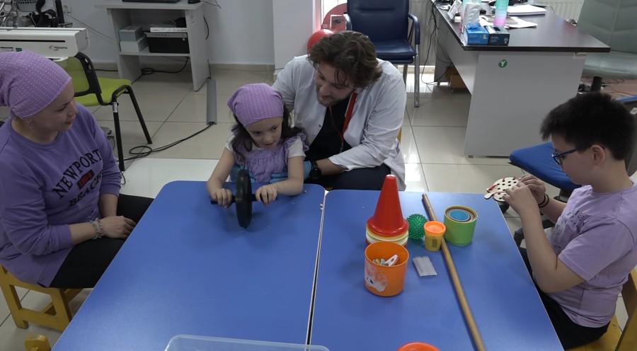 İkizleri doğduğundan beri kendi sosyal hayatından vazgeçen anne, 2019 yılında başvurduğu Dr. Ayten Bozkaya Spastik Çocuklar Hastanesinde 5 yılı geride bıraktı. Çocuklarıyla yakından ilgilenen anne Mine Demir, ne bir televizyonun başında zaman geçirdi ne de kadınların sürekli davet ettiği günlere katıldı. Kendine sadece parkinson hastalığı için 1 saatlik yürüyüş ayıran anne Mine Demir, "4 yaşına geldiğinde Elif Sümeyye için artık hastaneye getirilmemesi gerektiği söylendi. Artık yürüyemeyeceği, oturamayacağı, konuşamayacağı ve tek başına hareket edemeyeceği ifade edildi. Ben araştırmalarıma devam etti. Dr. Ayten Bozkaya Spastik Çocuklar Hastanesinin olduğunu öğrendim. Oradan birçok insanın yürüyerek, konuşarak çıktığı haberleriyle bizimde başarabileceğimize inandım. 5 yıl önce, bu hastanede tedaviye başladık. Doktorlarla diyalog halinde, dakikası dakikasını aksatmadan bütün egzersizleri yaptık. Sabah kalkış saatimiz, akşam yatış saatimiz belliydi. Yapmamız gereken egzersizleri oyunla kızıma göstermeye çalıştım. Tırnaklarına oje sürdüm, yürüme aletiyle yürümesini sağladım. Belime ayaklarını bağladık. Tahterevalli gibi bel egzersizlerini yaptırdım. Ben, kızım ve oğlumla bir örnek giyinerek her sabah çalışanlara günaydın demek için gezdirdim. Bazen sıkılıyor. Yapmak istemiyor. Bende ona bunu sevdirmem gerekiyor. Fikirler üreterek ona bunu sevdirmeye çalışıyorum" dedi.