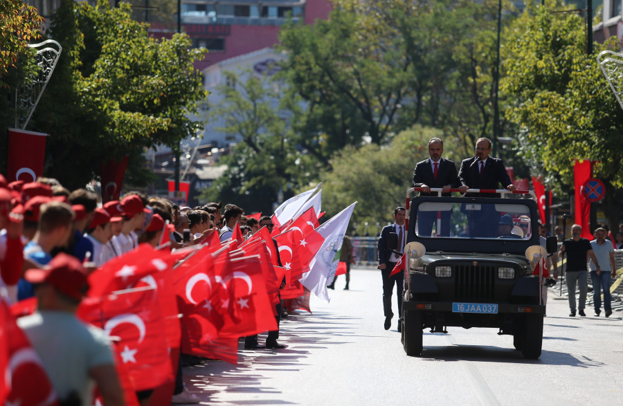 30 Ağustos Zafer Bayramı'nın 97'inci yıldönümü Bursa'da coşkuyla kutlandı. Askerî helikopter ve araçların da katıldığı geçiş resmi büyük ilgi gördü.