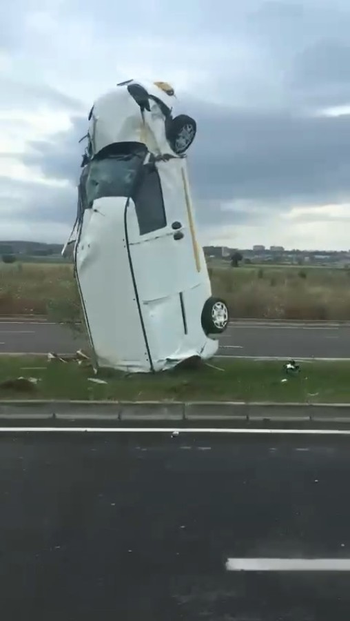 Yolun ortasında dikey şekilde kalan otomobili gören çevredekiler büyük şaşkınlık yaşarken, durumu 112 Acil Çağrı Merkez'ine bildirildi. İhbar üzerine gelen sağlık ekipleri yaralıyı Şehir Hastanesine sevk ederken, polis, başka bir kazaya sebebiyet vermemek için bölgede güvenlik önlemi aldı.