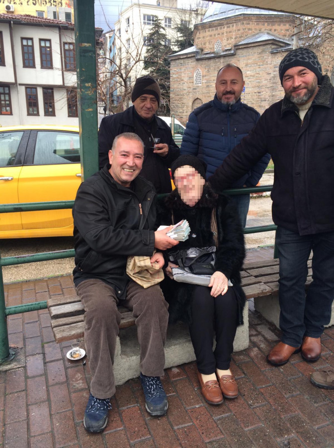 Kısa bir süre sonra kendisiyle irtibat kurulan kadın ve beraberindeki torunu, Bursa Valiliği'nin karşısındaki taksi durağında Fahrettin Akşar ve polis ekipleriyle bir araya geldi ve para dekontun kontrol edilmesinin ardından kadına teslim edildi.
