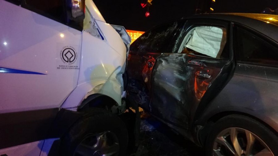 Kaza, dün gece saat 01.30 sıralarında merkez Yıldırım ilçesi Samanlı Mahallesi Samanlı Çevre Yolu üzerinde meydana geldi. Edinilen bilgiye göre, Ankara istikametine seyir halinde olan Muhammet Ö. idaresindeki 16 S 1850 plakalı işçi servisi, kavşakta karşı istikamete geçmeye çalışan Kenan K. yönetimindeki 16 KT 554 plakalı otomobille çarpıştı.