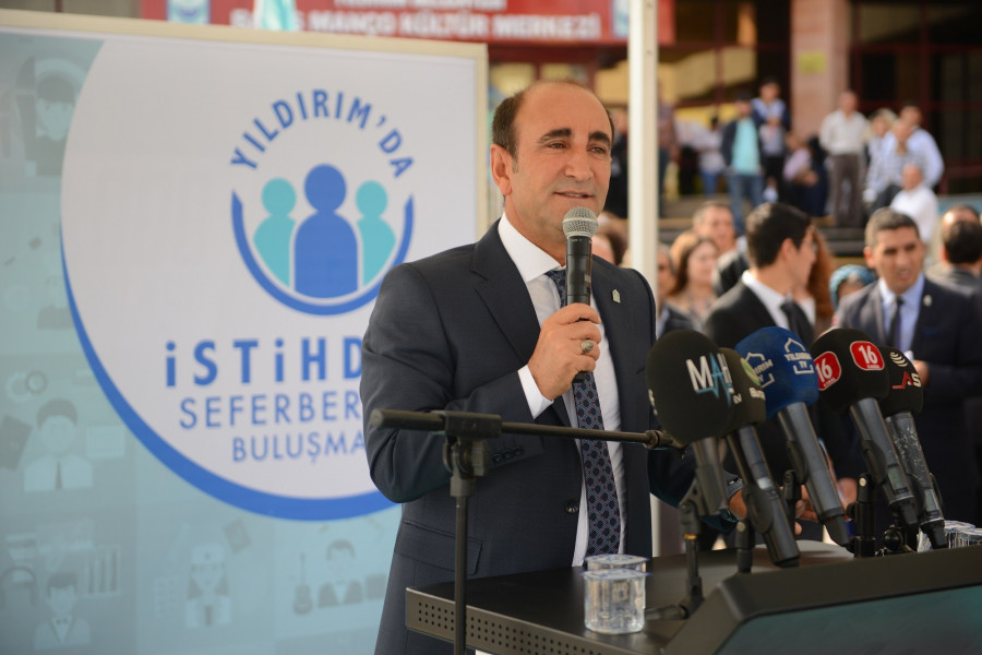 Kentin ekonomik kalkınmasına katkı sağlamak adına önemli projeleri hayata geçirdiklerini belirten Yıldırım Belediye Başkanı İsmail Hakkı Edebali, "Biz, Yıldırım Belediyesi olarak göreve geldiğimiz ilk günden itibaren kurduğumuz İstihdam Masamız vesilesiyle iş arayan on binlerce kardeşimizi firmalara yönlendirerek bunlardan bin 500 vatandaşımızın iş sahibi olmasına vesile olduk. Ancak bu farklı bir proje. Cumhurbaşkanımız Recep Tayyip Erdoğan'ın ülke genelinde başlattığı istihdama yönelik çalışmalarına biz de düzenlediğimiz bu etkinlik ile katkı sağlamak istedik. Kentimizdeki bu işe gönüllü, Bursa iş dünyasının önemli firmalarından 63 tanesi ile iş talebinde bulunan vatandaşlarımızı bir araya getirdik. Etkinliğe beklentilerin üzerinde bir katılım oldu. Bunu hem farkındalık oluşturmak hem de bu vesileyle yoğun bir talepte bulunan, iş arayan hemşehrilerimizi iş sahibi yapmak düşüncesiyle bu etkinliği düzenledik" diye konuştu.