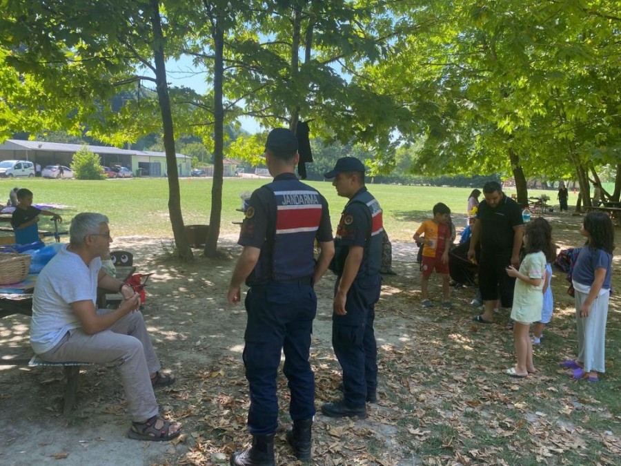 Jandarma ekipleri piknik yapan vatandaşlara ateş yakmamaları konusunda uyarılarda bulunuyor.