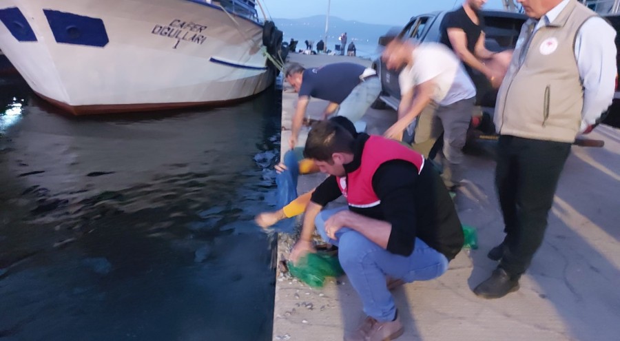 Mudanya ilçesinde yasak alanda kum şırlanı avcılığı yapanlar kıskıvrak yakalandı, bin kilo kum şırlan denize salındı.