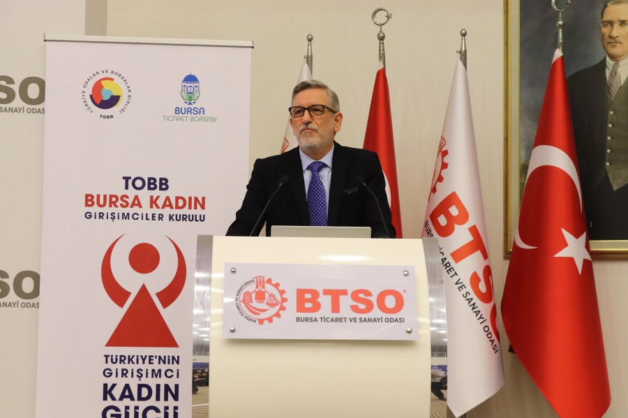 BTSO Yönetim Kurulu Başkanı İbrahim Burkay, TOBB Bursa Kadın Girişimciler Kurulu üyeleri ile bir arada olmaktan memnuniyet duyduğunu ifade etti. Cumhuriyetin ikinci yüzyılında Türkiye'nin hedeflerine ulaşabilmesinin yolunun kadınların ekonomik ve sosyal olarak güçlenmesinden geçtiğini ifade eden Başkan Burkay, "Güçlü, sürdürülebilir, dengeli ve kapsayıcı kalkınma için; kadının çalışma hayatında hak ettiği yeri alması, işgücüne aktif bir biçimde katılması ve üretimde söz sahibi olması anahtar bir role sahip" dedi.