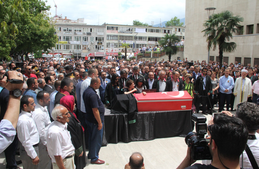 Bursa'nın Gemlik ilçesinde avukatlık ofisinin önünde hayatını kaybeden Özgür Aksoy için tören düzenlendi.