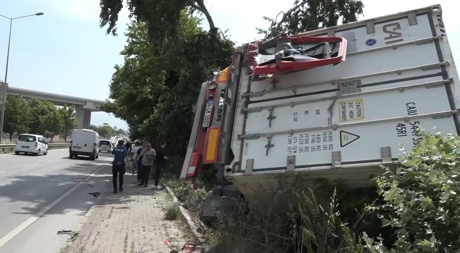 Bursa'da seyir halindeki kamyon ile çarpışan tır şarampole uçtu. Kazada, tır sürücüsü yaralanarak hastaneye kaldırıldı.