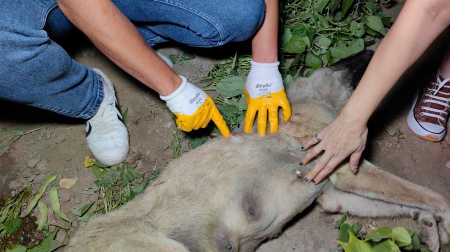 Köpek yeni doğum yapmış, sütlü bir hayvan ve büyük ihtimalle yavruları var. Şimdi burada yavrularına bakacağız. Polisler geldi, olay yeri inceleme yapılıyor. Aynı şekilde belediyeden de arkadaşlar geldi.