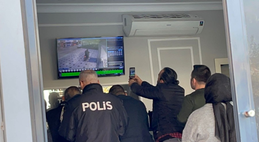 O anlar güvenlik kamerasına yansırken, polis şüphelinin yakalanması için kameralarını inceledi.