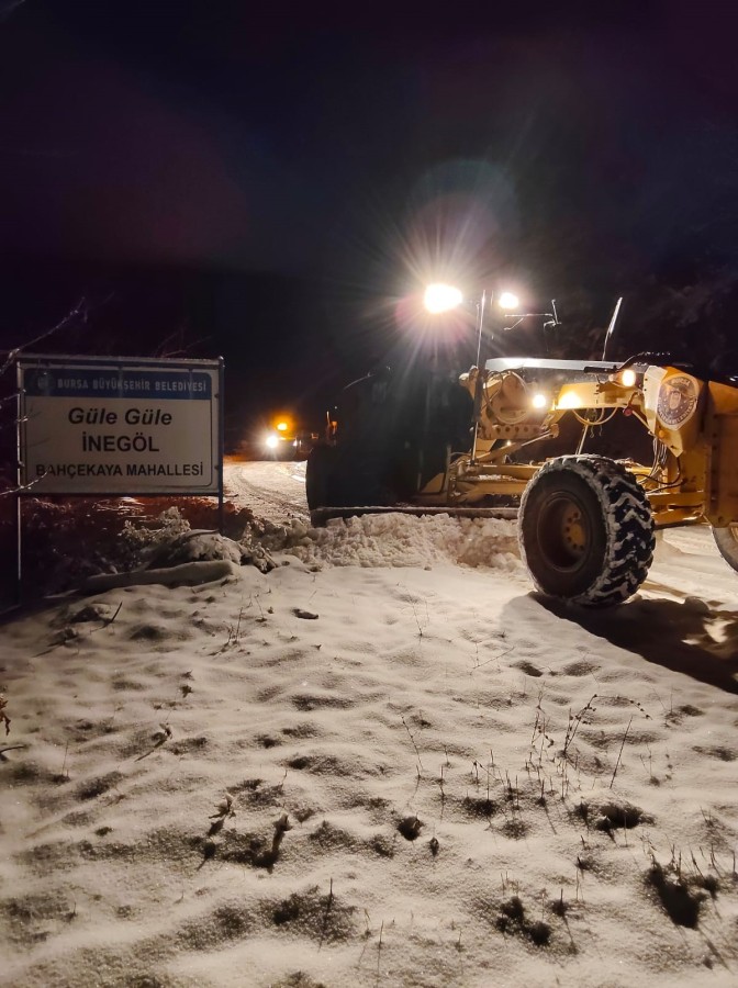 Kent genelinde iki vardiya halinde görev alan toplam 1021 personel, 203 iş makinesi ve kar küreme aracıyla 145 mahalle yolunu trafiğe açtı. Kar yağışının etkili olduğu bölgelerde; Keles'te 23, İnegöl'de 22, Büyükorhan'da 21, Kestel ve Osmangazi'de 14, Orhaneli'de 13, Mustafakemalpaşa ve İznik'te 10, Harmancık'ta 7, Yıldırım, Gemlik ve Gürsu'da 3, Yenişehir ve Orhangazi'de ise birer mahallenin yolu ulaşıma açıldı. Kent genelinde kapalı mahalle yolu bulunmadığı, ekiplerin yağışın sürdüğü bölgelerde çalışmalarına devam ettiği bildirildi.