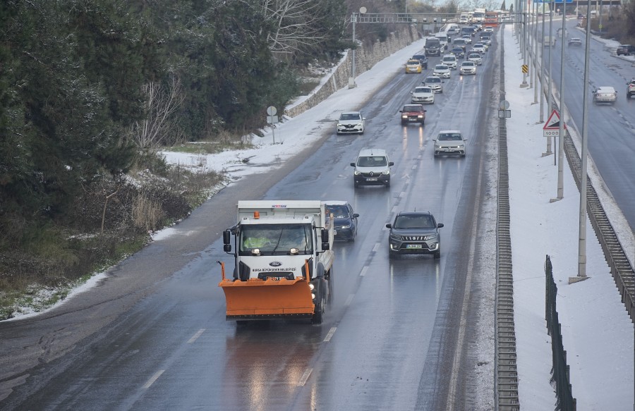 Meteorolojinin uyarısının ardından beklenen kar yağışı, Bursa'da sabah saatlerinde etkisi gösterdi. Yağışla birlikte Mudanya ilçesi ile kent merkezi arasındaki yol kapandı. Tepe Devrent bölgesini çıkamayan araçlar, aynı yoldan geri dönmek zorunda kaldı