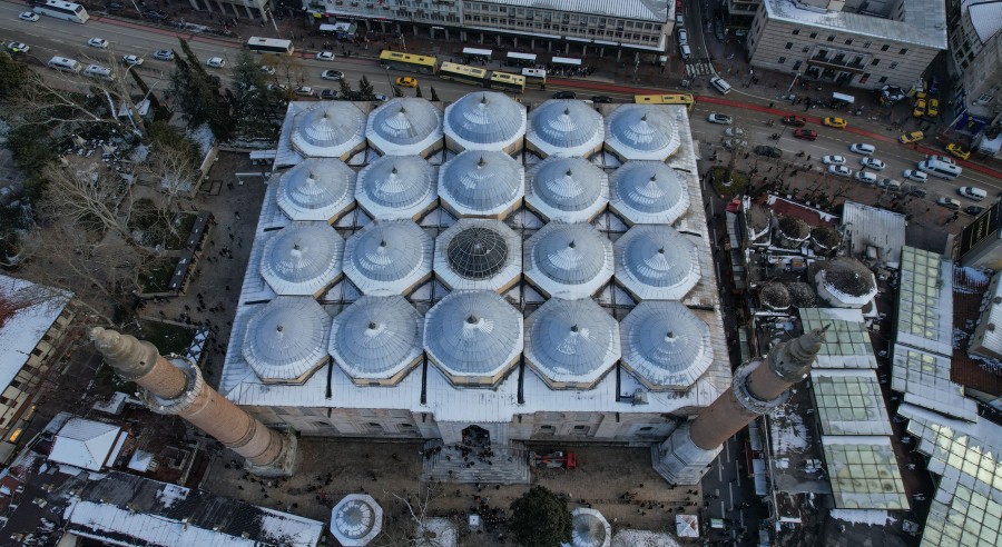 Bursa'da aralıklara devam eden kar yağışının dinmesinin ardından kartpostallık görüntüler ortaya çıktı. Şehrin yüksek yerlerinden Ulucami ve Uludağ'ın muhteşem görüntülerine yamaçlardaki rengarenk evler eşlik etti. Bu güzel manzara havadan görüntülendi.