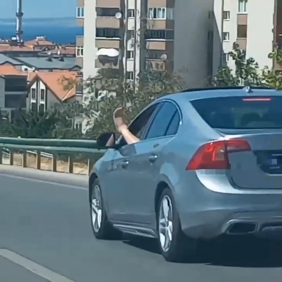 Bursa'nın Mudanya ilçesine doğru seyir halindeki otomobil sürücüsü bir ayağını camdan dışarı çıkarıp yolculuk yaptı.