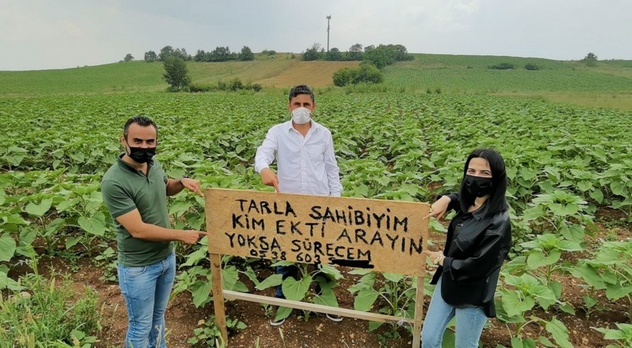 İnegöl ilçesinde ismini vermek istemeyen bir tarla sahibi, aylar sonra tarlasına gelip, ekim yapacağı sırada tarlada ekili olan ayçekirdeklerini görünce şaşırdı. Tarlasına kendisinden habersiz ekilen ürünleri gören çiftçi, ürünleri sökmeye kıyamayıp uyarı tabelası çaktı. Ürünlerin kime ait olduğunu öğrenmek için tabelaya "Tarla sahibiyim, kim ekti arayın. Yoksa süreceğim" yazarak, ürünlerin sahibinin ulaşması için telefonunu da yazdı. Arazide yürüyüş yapan vatandaşlar, tabeladaki yazıyı görünce şaşırdılar. Tarla sahibi açıklama yapmazken, yoldan gören vatandaşlar önce şaşırdı, sonrasında gülümsediler.