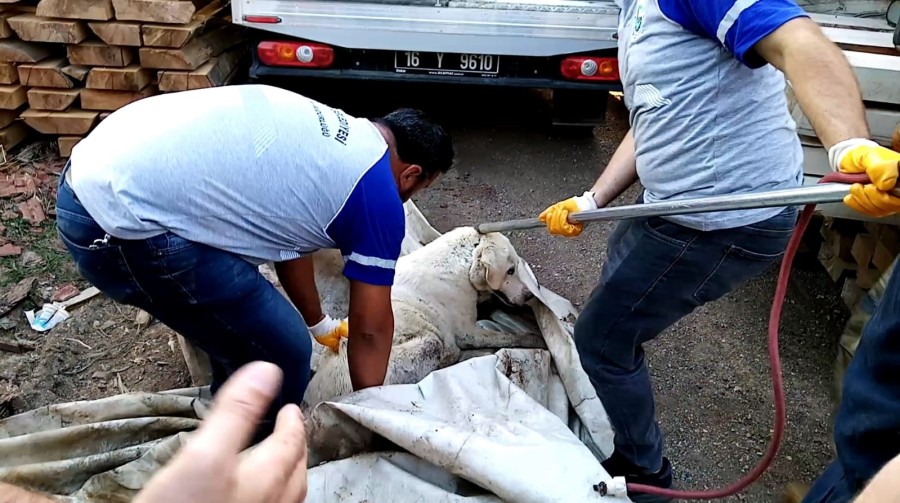 Olay yerine gelen itfaiye ekipleri, köpeği sıkıştığı yerden çıkarmak için çalışma başlattı. Keresteleri motorlu testere ile kesen ekipler, diğer yandan da iş makinesiyle keresteleri kaldırdı. Kereste yığınları arasından kurtarılan anne köpek, tedavisi yapılmak üzere İnegöl Belediyesi ekipleri tarafından barınağa götürüldü.
