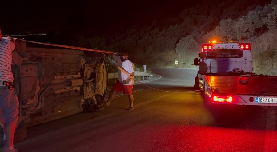 Bursa'nın Gemlik ilçesinde sürücüsünün kontrolünden çıkan otomobil takla attı. Yaşanan kazada şans eseri yaralanan olmadı.