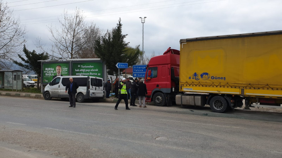 Kaza İznik-Orhangazi kara yolunun Elbeyli sapağında meydana geldi. Elbeyli kavşağından ana yola kontrolsüz olarak çıkan Recep Eren (67) idaresindeki 34 JL 7281 plakalı hafif ticari araca, karşı yönden gelen Ali Rıza Öztürk (51) yönetimindeki 81 DG 817 plakalı tır çarptı. Kazada araç sürücüsü Recep Eren yaralandı. Olay yerine çağrılan ambulansla İznik Devlet Hastanesine kaldırılan Eren'in tedavisine başlanırken, tır şoförü kazadan yara almadan kurtuldu. Polis kaza ile ilgili tahkikat başlattı.
