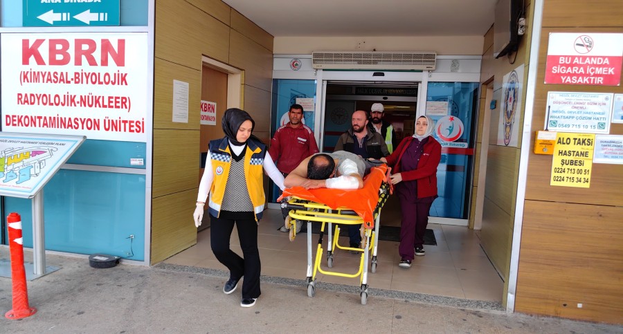 Vücudunda derin yaralar oluşan işçi, Ambulansla Bursa Yüksek İhtisas Eğitim ve Araştırma Hastanesine sevk edildi.