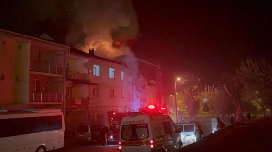 Bursa'nın İnegöl ilçesinde 3 katlı apartmanın çatısı alev alev yandı.