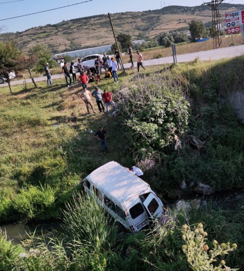 Bursa'nın Yenişehir ilçesinde mevsimlik işçileri taşıyan minibüs, karşı yönden gelen araçla çarpışmamak için manevra yapınca dereye uçtu. Kazada 5 kişi yaralandı.