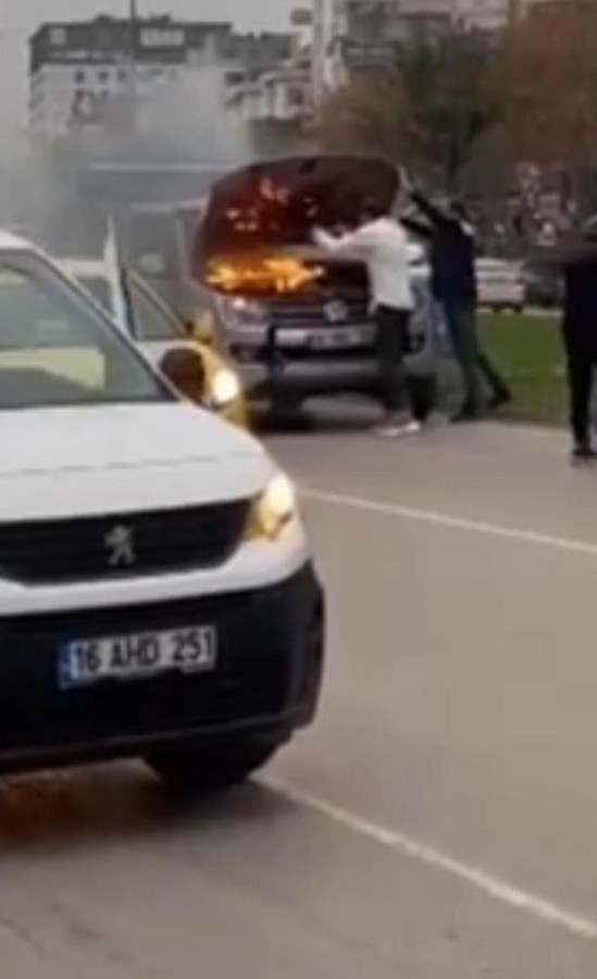 Bursa'da seyir halindeki otomobil cadde üzerinde alev aldı. Vatandaşların yardımıyla söndürülen araç korku dolu anlar yaşattı.