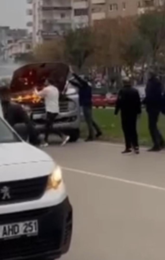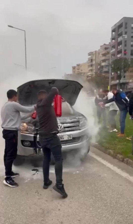 Cadde üzerinde seyir halindeki otomobil sürücüsü, aracın motor kısmından dumanların yükseldiği görünce hemen frene bastı. Araçtan hızla aşağı inen sürücü kaputu açtığında aracın yandığını gördü.