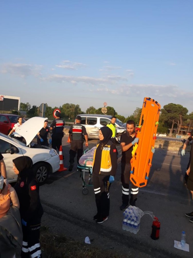 77 ABS 258 plakalı aracın sürücü Ş.E.'nin durumunun ağır olduğu öğrenilirken, Ş.E. ile birlikte E.İ.E., H.E., S.A. ve A.A. Bursa Şehir Hastanesinde tedavi altına alındı. 16 TR 351 plakalı aracın sürücüsü B.A. ve eşi N.A. ise Karacabey Devlet Hastanesinde tedavi altına alınırken, hayati tehlikelerinin olmadığı öğrenildi.
