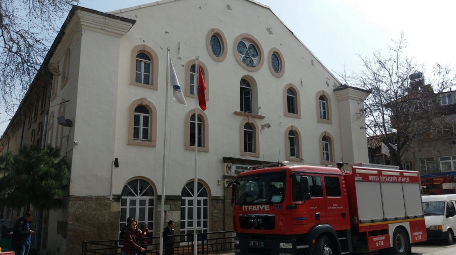 Bursa'nın Mudanya ilçesinde kiliseden kültür merkezine dönüştürülen tarihi yapıda çıkan yangın korkuya sebep oldu.