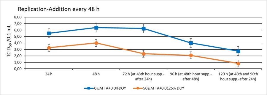 Virüs durdurma deneyleri yaptıklarında çok çarpıcı sonuçlar ortaya çıktığını belirten Yeşilbağ, "Virüsün çoğalmasını yüzde 99,9 oranında durdurduğunu gördük. Bu çok çarpıcı verinin yanı sıra, virüsün hücreye girmesini de yüzde 99 oranında engellediğini gördük. Bu, enfeksiyon başlamadan vücudunuza yayılmadan durdurulduğu anlamına gelmektedir. Başka bir deneyde ise ortamda bulunan, vücuda girmeyen virüsü ne kadar durdurabiliyor diye baktık. Burada da yüzde 99,5 oranında başarılı olduk. Geliştirdiğimiz doğal içerikli yeni formülasyon hem ortamdaki virüsü durduruyor, hem vücuda girmesini yavaşlatıyor, hem de vücutta çoğalmasını engelleyen bir etki ortaya koyuyor. Bizim için klinik öncesi aşamaya gelmiş önemli bir ilaç adayını ortaya çıkarmış olduk" diye konuştu.