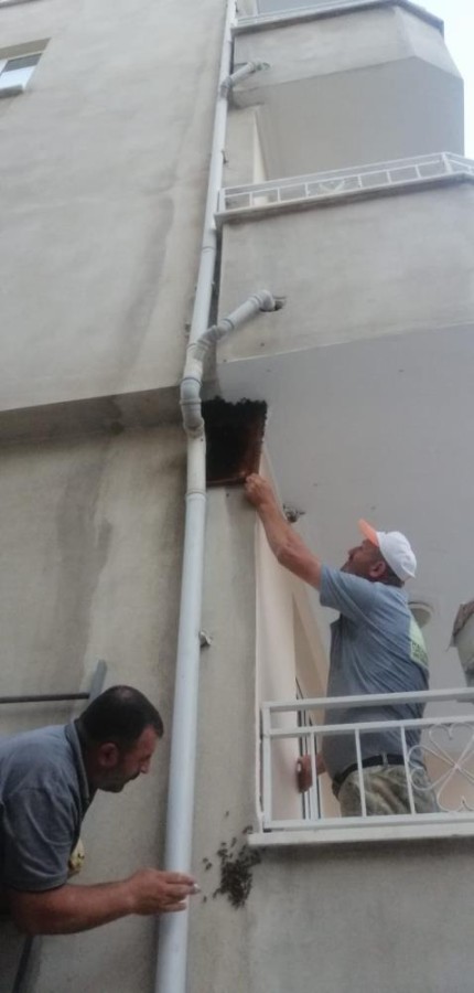 Günlerdir oradaki arılar nedeniyle rahatsız olan apartman sakinleri bir bal üreticisine haber verdiler.