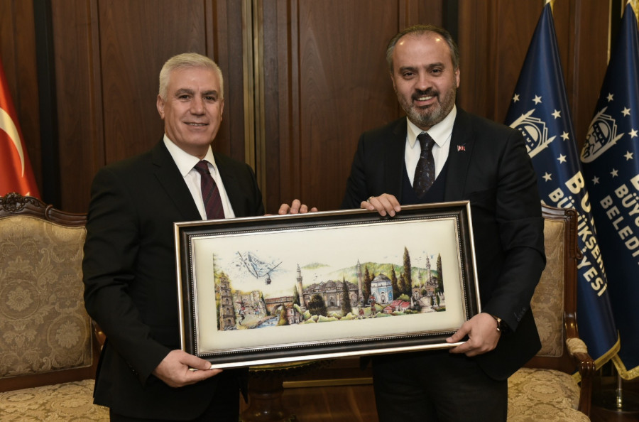 Bursa Büyükşehir Belediye Başkanı Alinur Aktaş, Nilüfer Belediye Başkanı Mustafa Bozbey'i ağırladı.