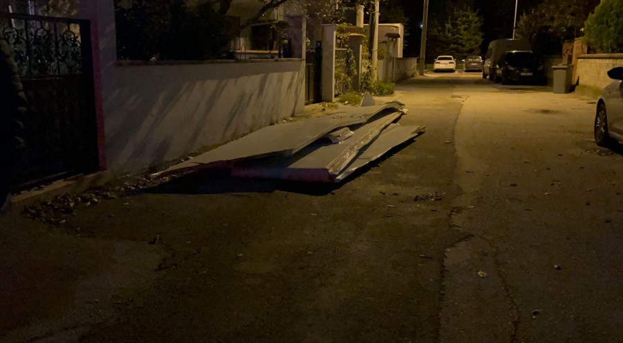 Yaklaşık 100 metre uçarak diğer sokak üzerine düşen çatı parçalarını gören vatandaşlar hayretler içerisinde kaldı. Uçan çatı parçaları, bir binaya çarparak hasar oluşturdu. Çatısı uçan dubleks daire sahibine haber verildi. Uçan çatı, ekipler tarafından yoldan kaldırıldı.