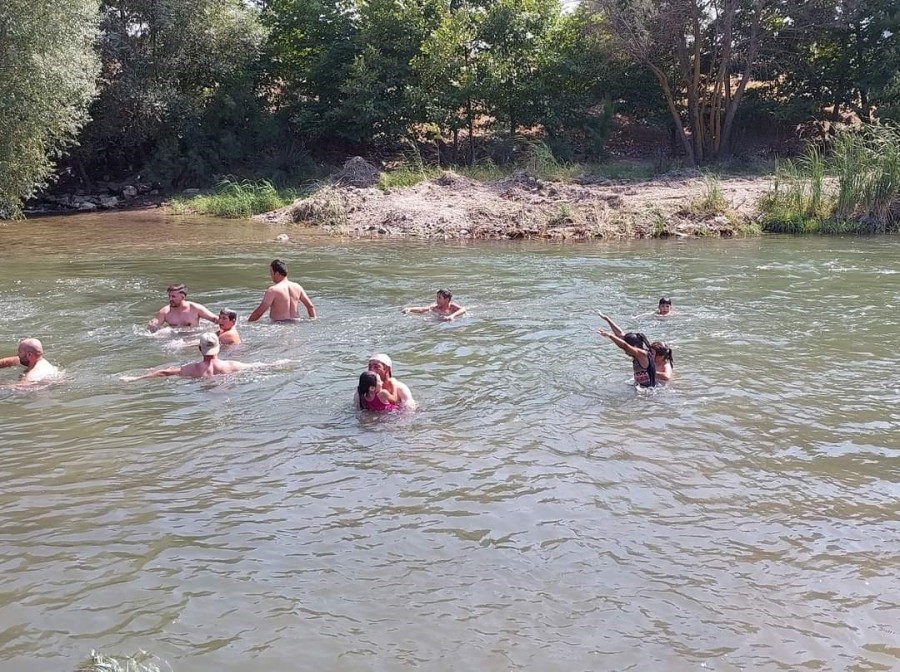 Tarla ve bahçede çalışıp sıcaktan bunalan mahalle sakinleri ise kendilerini çayın serin sularına bıraktı.