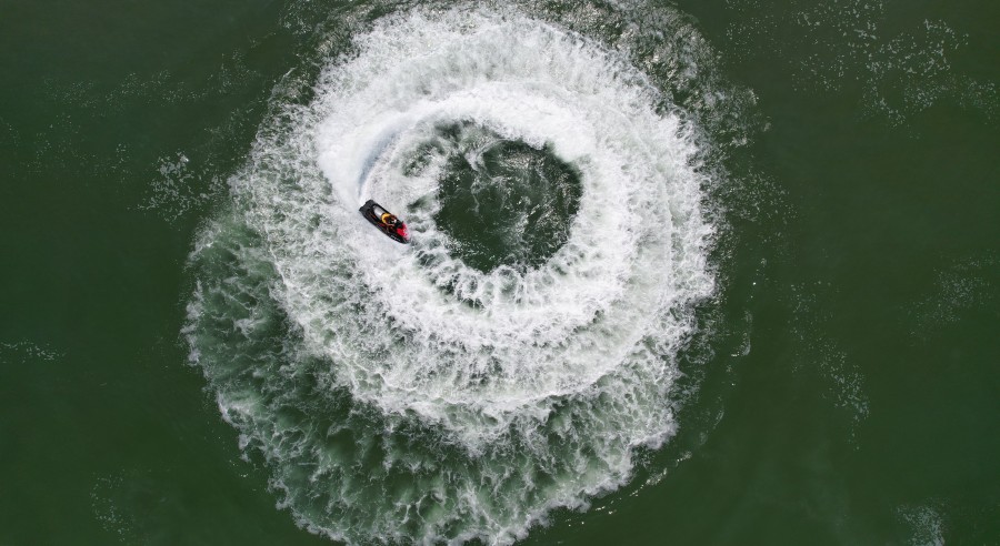 Türkiye'nin mavi bayraklı en uzun plajı olma unvanına sahip Karacabey Boğazı plajında cankurtaranlar tarafından yapılan jet skili kurtarma tatbikatı nefesleri kesti. Kumsalda yatıp güneşlenirken şezlonglarından kalkan tatilciler, kurtarma tatbikatını ilgiyle izledi.