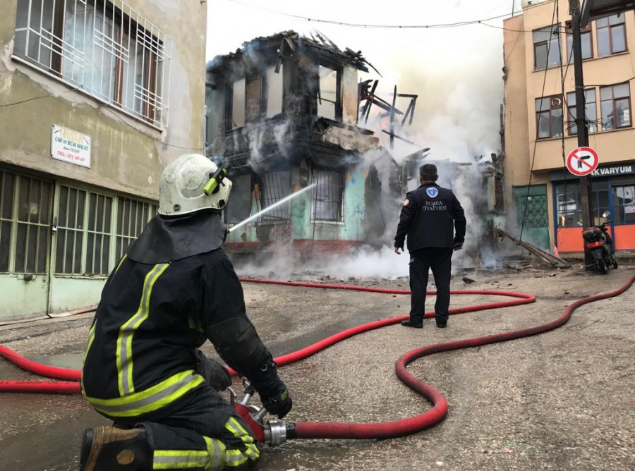 Bursa'da tarihi hanlar ve çarşılar bölgesi içinde yer alan Kayhan'da tarihi ahşap bir evde yangın çıktı. Alevler gökyüzüne yükselirken, olay yerine çok sayıda itfaiye ile ambulans ekibi sevk ediliyor