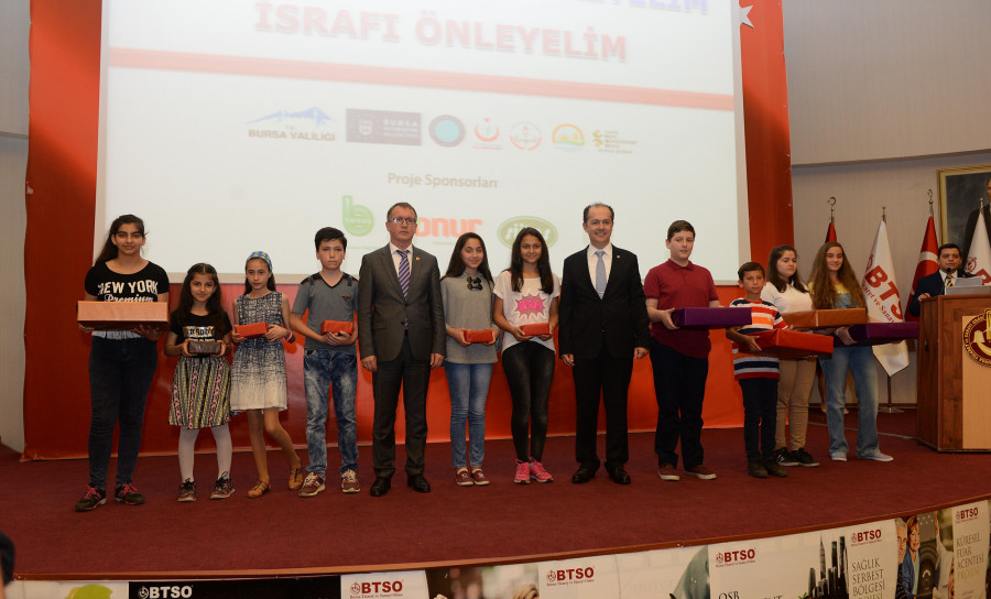 Bursa Ticaret ve Sanayi Odası (BTSO) öncülüğünde düzenlenen 'Güvenilir Gıda Tüketelim İsrafı Önleyelim' projesi kapsamında düzenlenen afiş ve resim yarışmasında dereceye giren öğrenciler ödüllerini aldı.