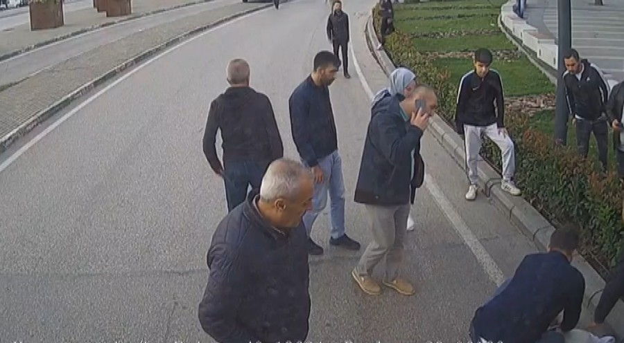 Bursa Büyükşehir Belediyesi'ne bağlı yolcu otobüsü seyir halindeyken, taksicilerle kavga eden ve sinirle aracın önüne aniden atlayan Mert S.'ye çarptı. Çarpmanın etkisiyle Mert S. yola savrulurken, olayın şokuna giren otobüs şoförü hemen araçtan inip yaralı gencin yardımına koştu.