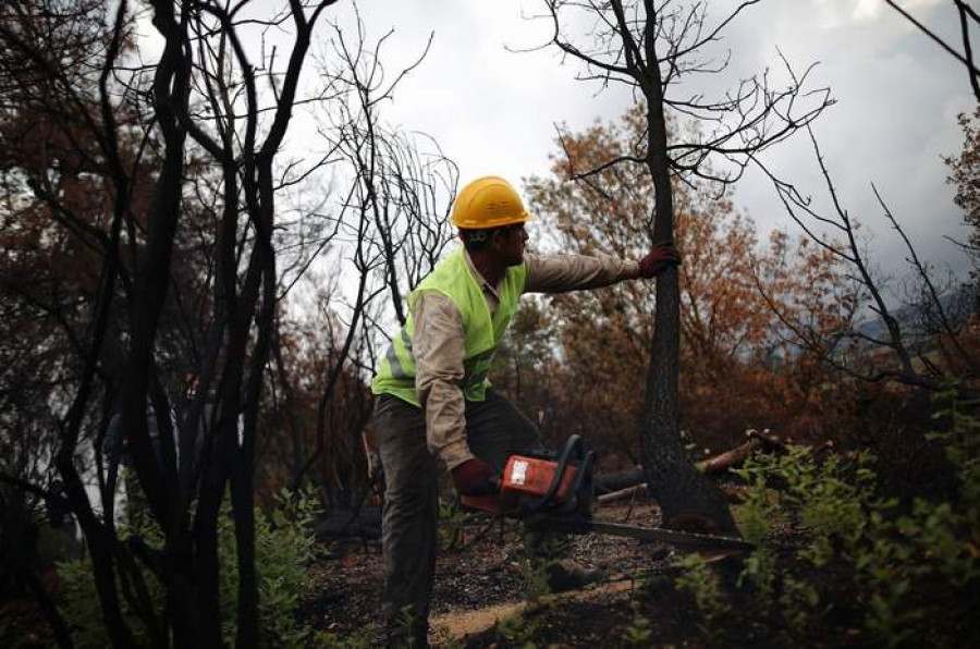 Bursa'da uyuşturucu bağımlısının küle dönmesine sebebiyet verdiği 14 hektarlık ormanlık alandaki 2 bin 284 ağacın yerine 22 bin fidan dikilecek. Oman işçileri, yanan ağaçları tek tek keserek alanı temizliyor.